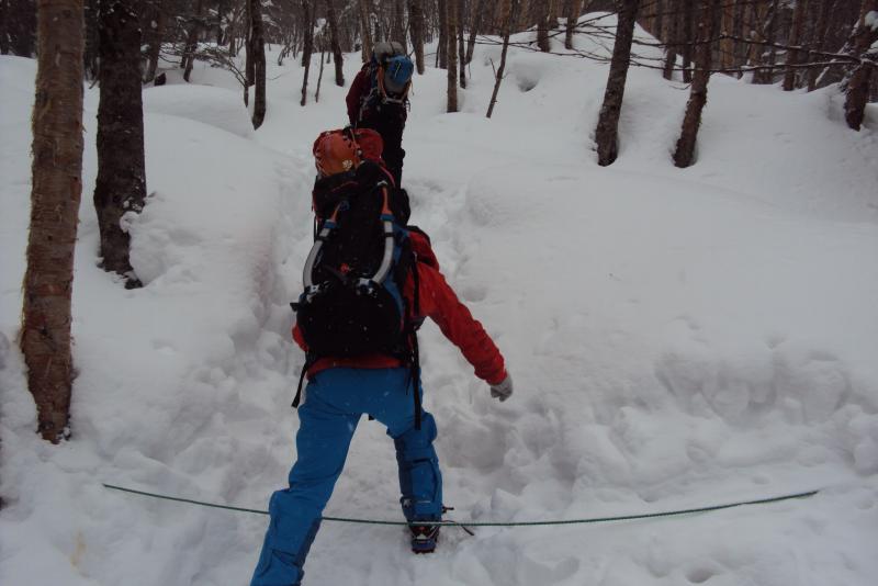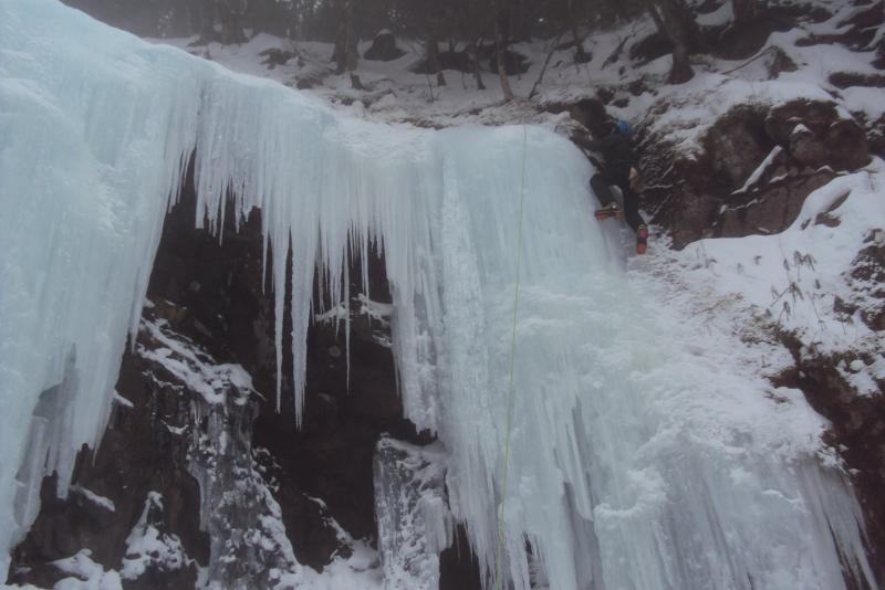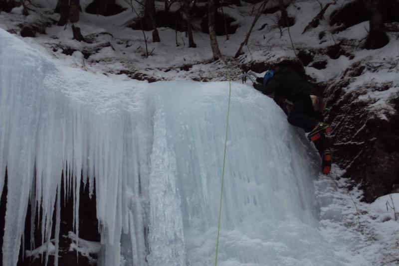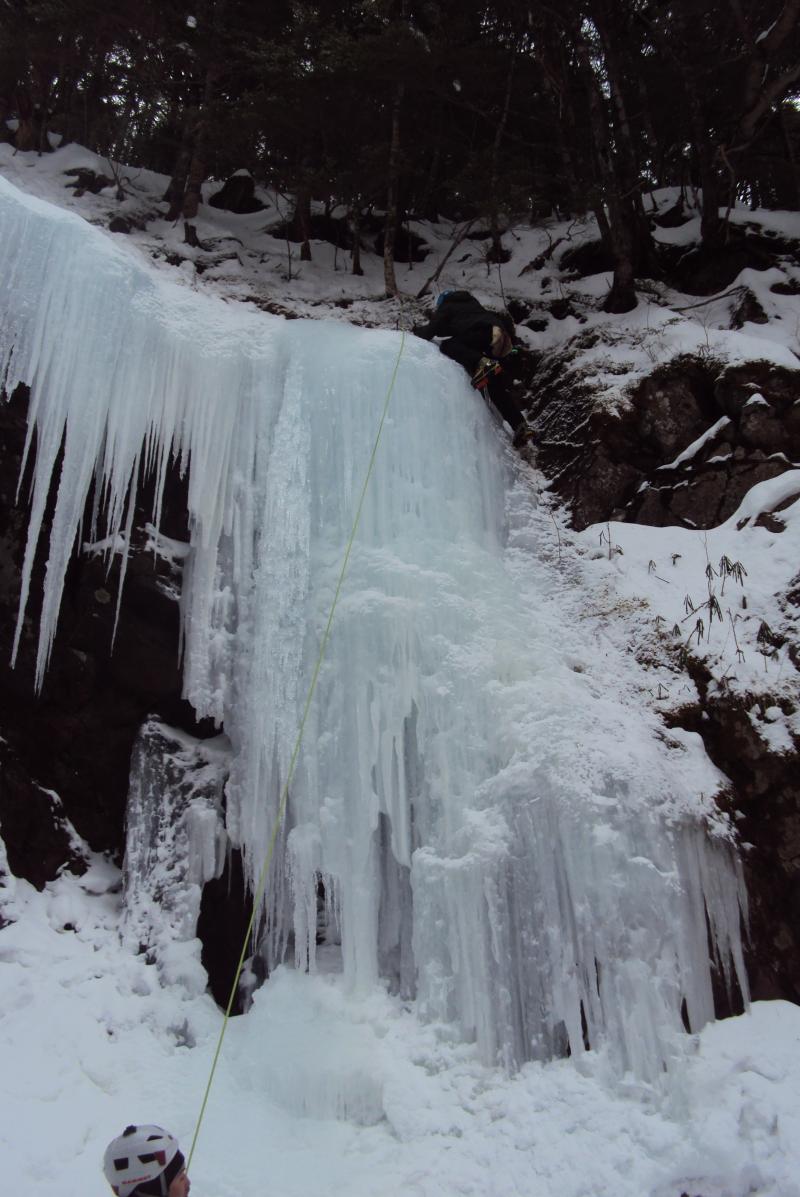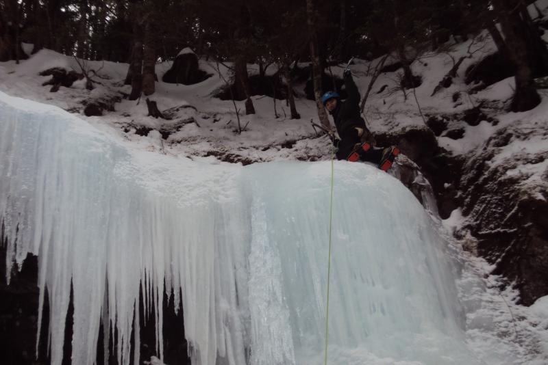- 氷が多少もろいところもありましたが、上部のしっかりした箇所で支点を作れば問題ありません。