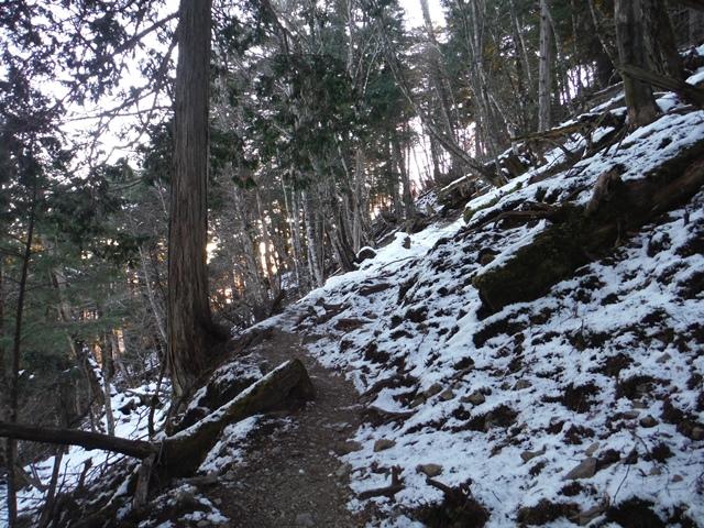 長沢背稜:積雪は少ないが登山道がわかりづらい場所も。酉谷山辺りまで断続的に雪道になる。酉谷避難小屋の水場はよく出た