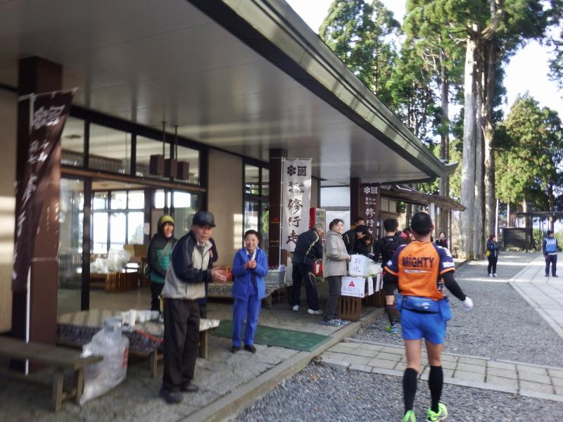 登山道というより参道を登ります。途中にいくつかお寺を通ります。標高1,153mの奥ノ院が第1エイド。