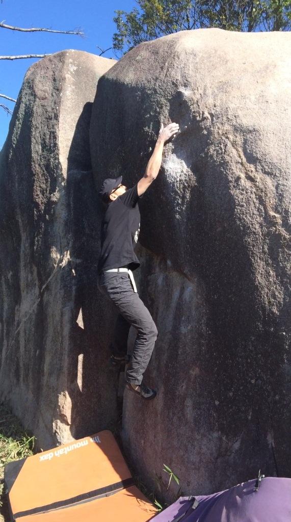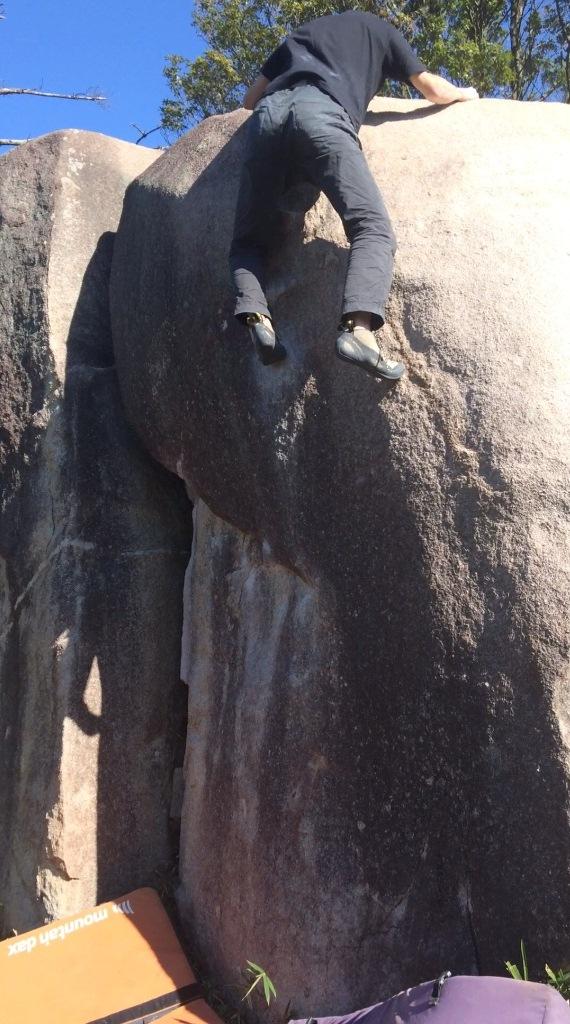 上部がホールドの乏しいスラブ。矢掛本陣よりは登りにくいかも。