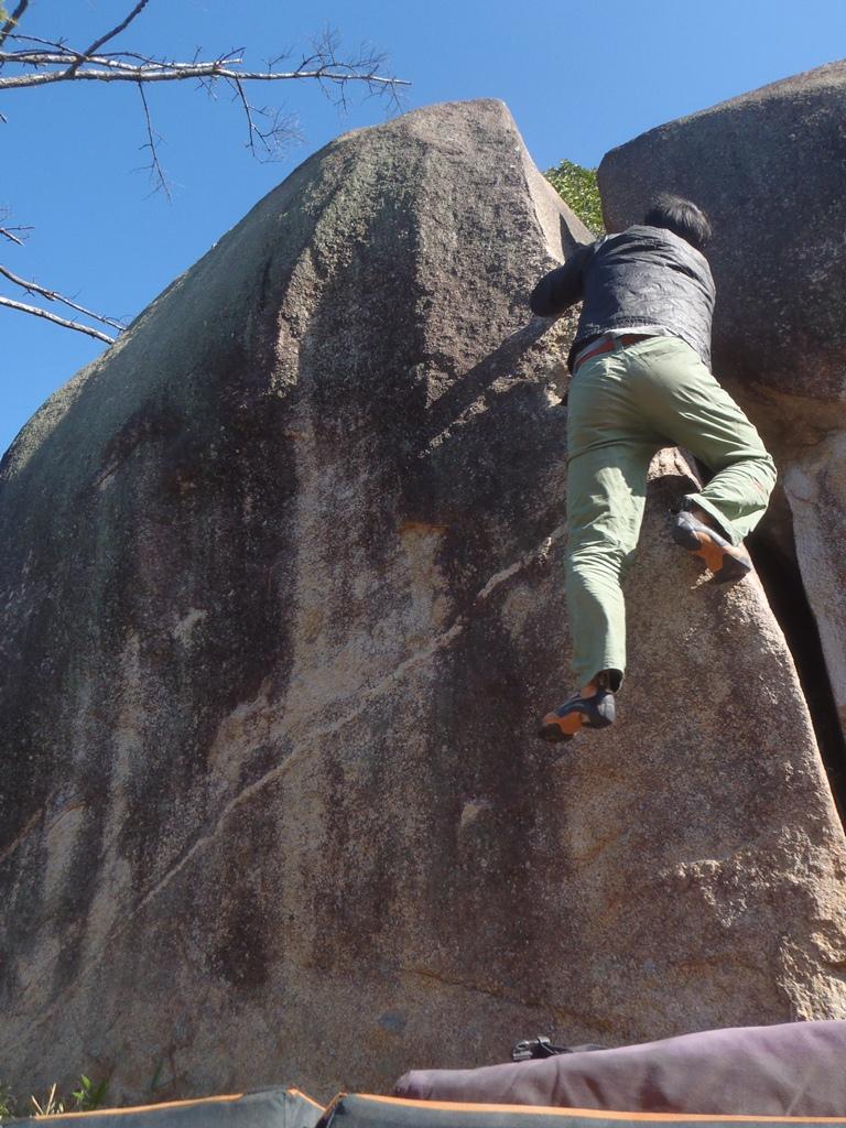 上部はホールドが乏しく、ちょっと怖いです。岩初心者にはいい登竜門になりそう。