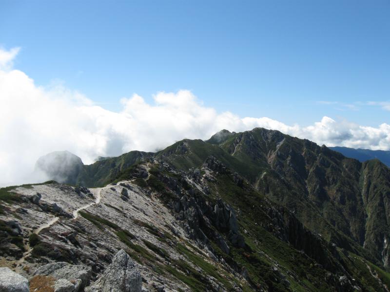 2日目:池山小屋-(40分)→マセナギ-(135分)→分岐-(75分)→空木岳-(180分)→池山小屋-(40分)→林道終点登山口