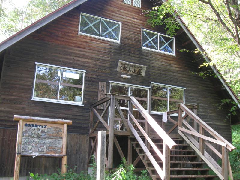 - 1日目:林道終点登山口-(70分)→池山小屋