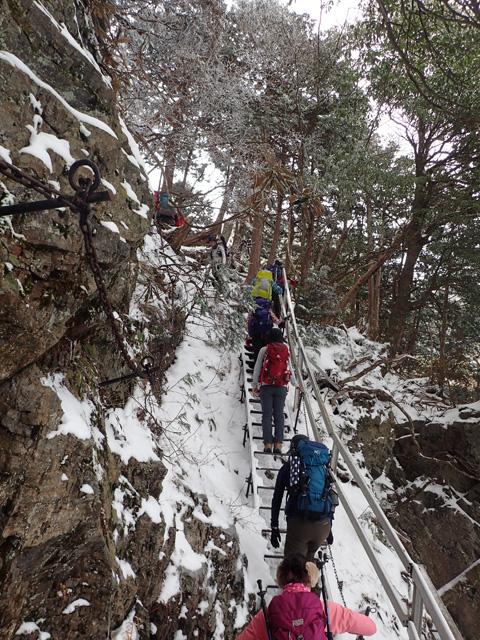 鎖場やハシゴが連続する難しいコースが特徴の山です。