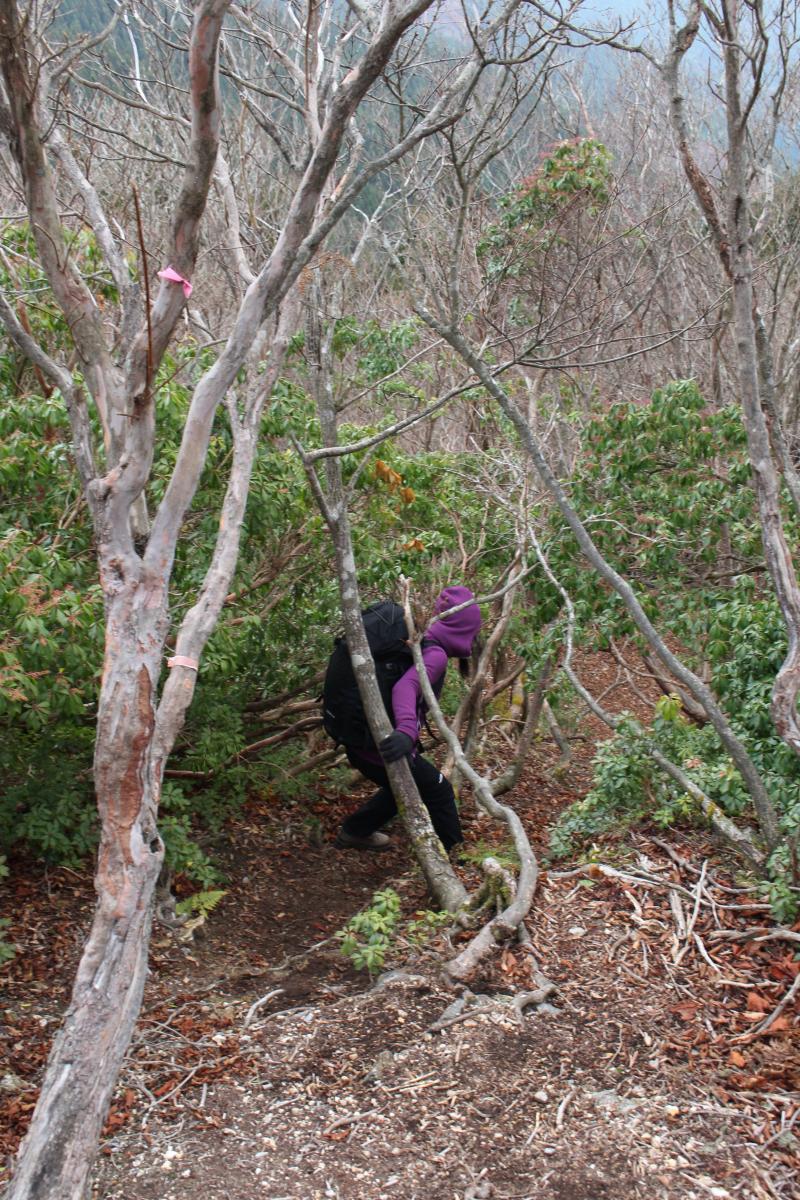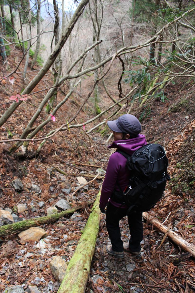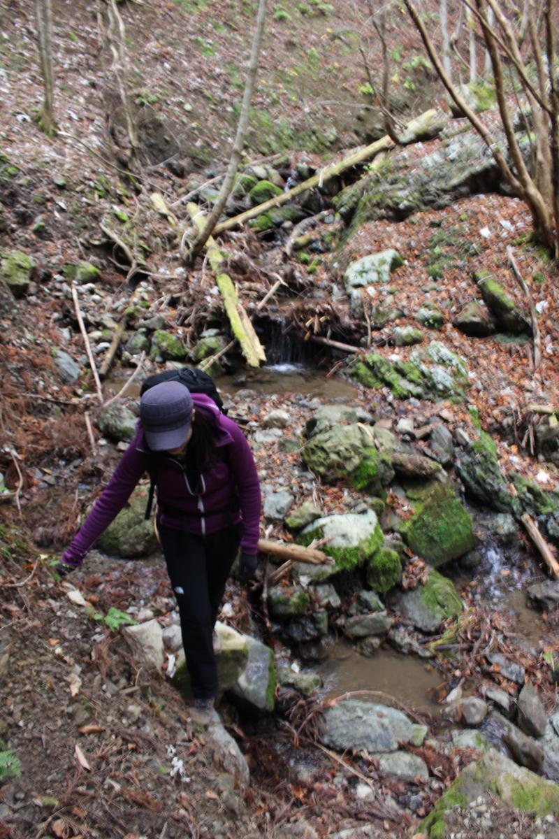 谷沿いを下っていくのですが、足元が悪かったり、急斜面だったりとなかなか手強かったです。上級者向きの登山道です。