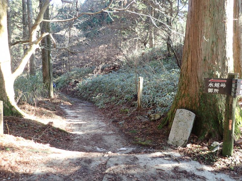 水越峠バス停駐車場→(54分)→太尾塞跡→(11分)→六道の辻→(8分)→大日岳→(8分)→山頂広場→(10分)→一の鳥居→(77分)→水越峠バス停駐車場
