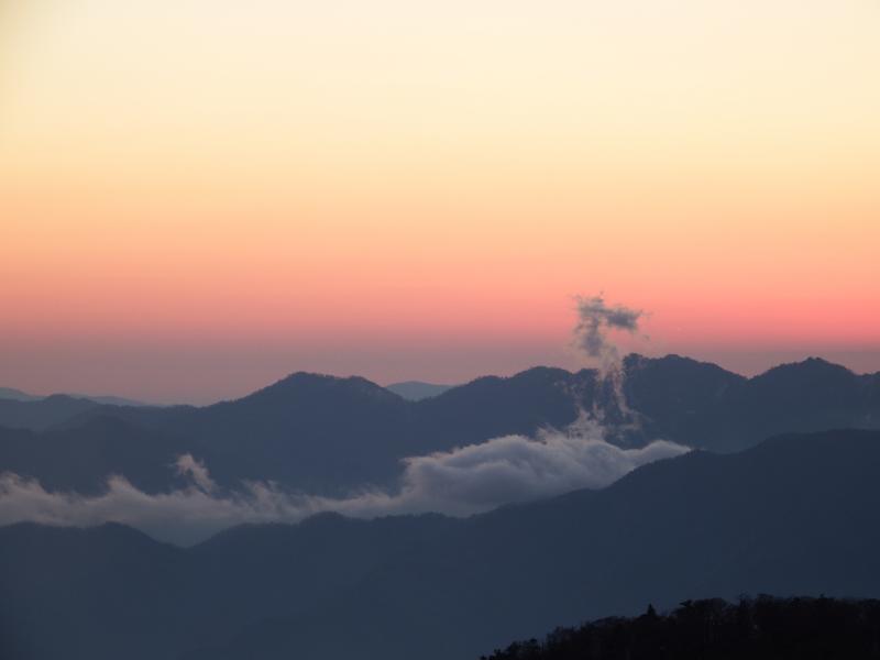 いつもは賑やかな大台ケ原ですが、日出が岳から見る夕日を一人占めでした。めちゃくちゃ寒かったです。