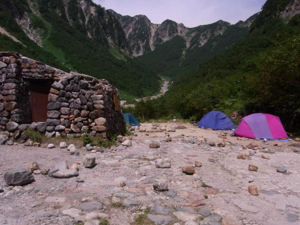 - 一日目 上高地(2:30)横尾(3:30)天狗原分岐(2:00)槍ヶ岳山荘テント場