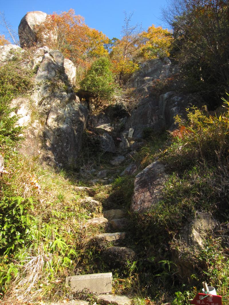 - 近道の山道はロープもあるコースですが、珍しい岩も見られます。