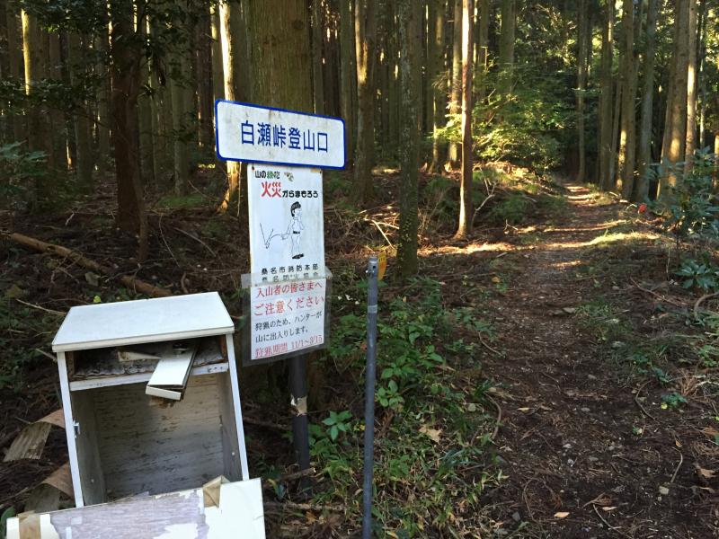 - 藤原簡易パーキング【15】白瀬峠登山口【80】電波塔下【130】御池岳山頂【10】ボタンブチ【210】白瀬峠登山口