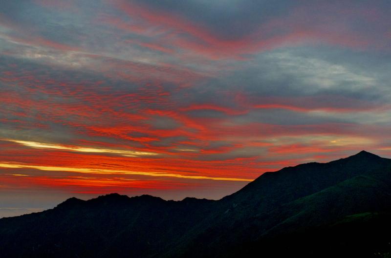 まだ暗いうちから出発し、途中で朝焼けを見ながら歩きます。