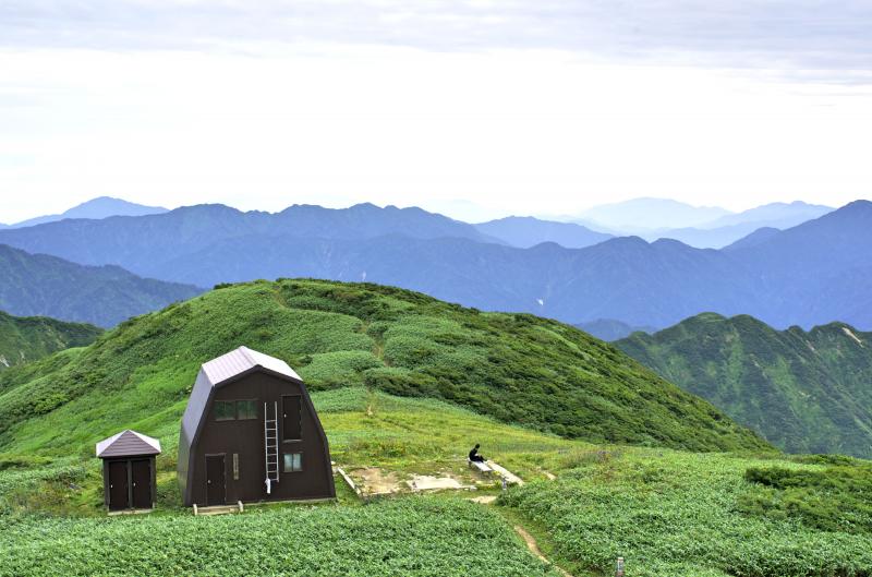 しばらく歩くと今日の宿泊地、梅花皮小屋に着きした。宿泊者は少ないようで、テントは自分を含め3張、小屋の中も3人ほどでした。