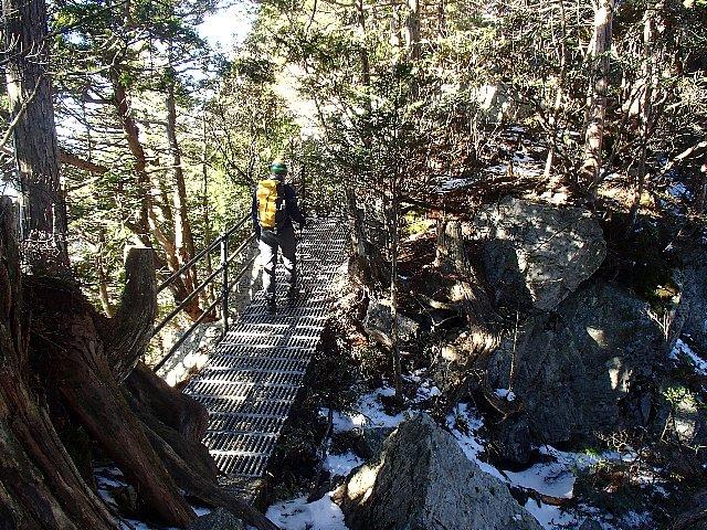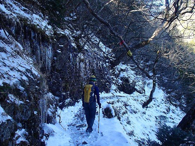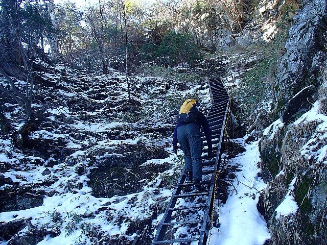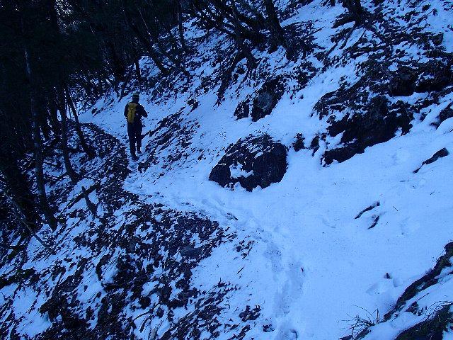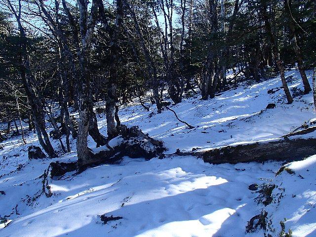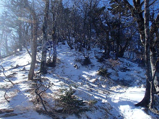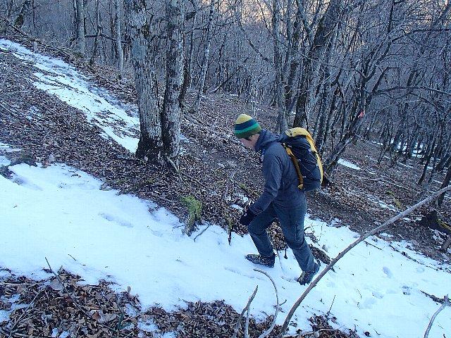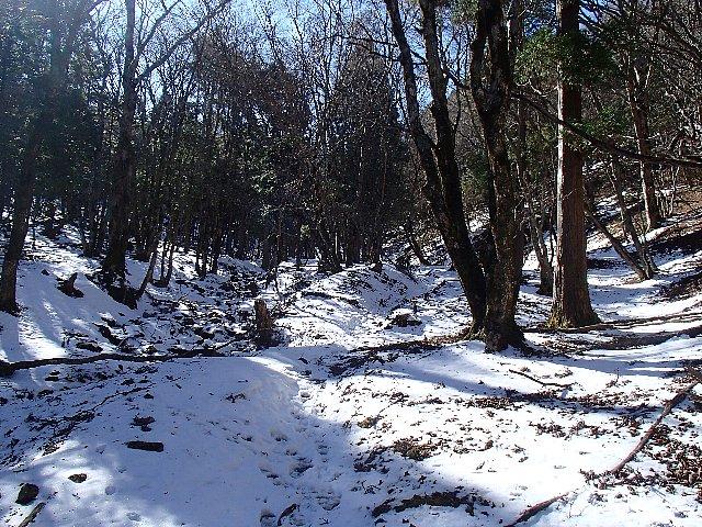 12月に入り最初の寒波で雪が降ったとの情報で雪を期待しての入山でしたが、暖かい日が続いたせいで南斜面では消滅。北側の日陰斜面で残るのみでした。