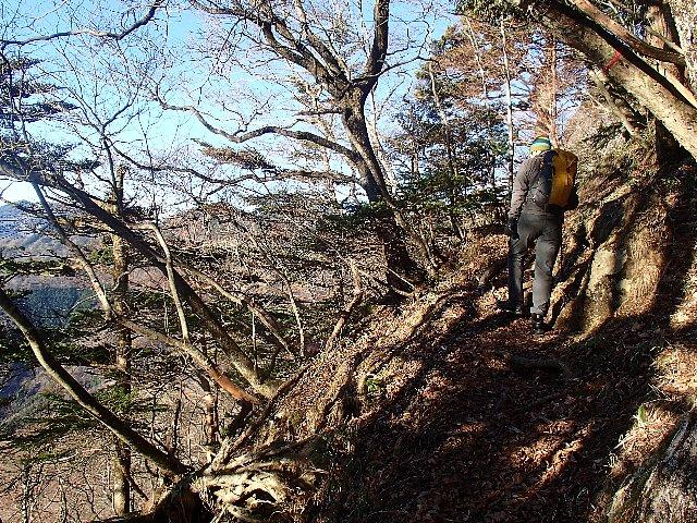 厳冬期には和佐又山から進むと小普賢岳は夏道で巻くのではなく小普賢岳を超えて進む。