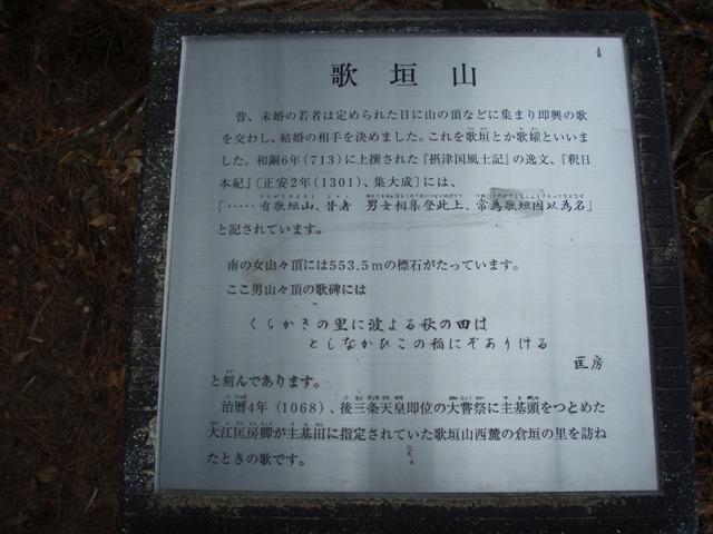 - バス停・歌垣山登山口~45分~歌垣山・男山~5分~歌垣山・女山(553.4m)~20分~堀越峠~25分~妙見奥之院~30分~バス停・奥之院