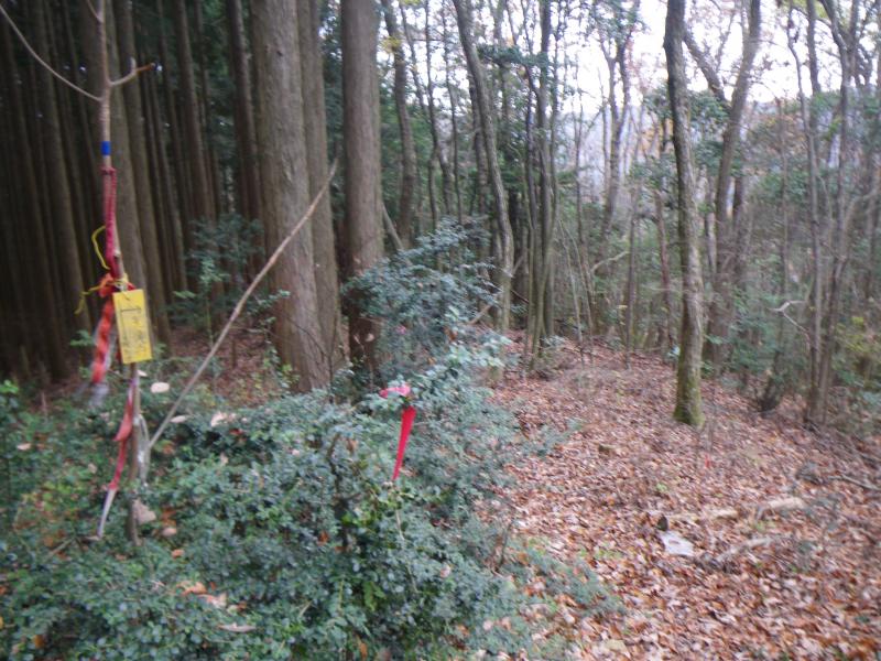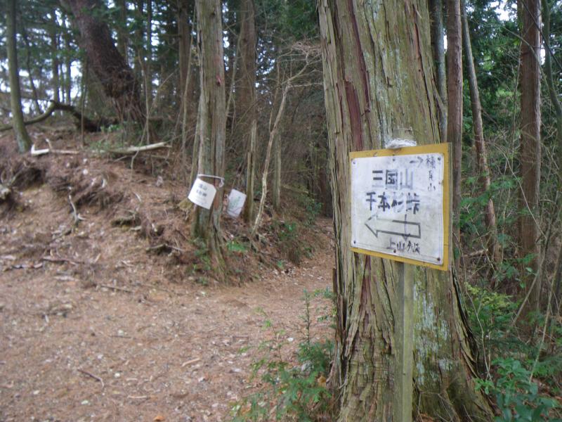 三国山(みくにやま・885m)は和泉国・河内国・紀伊国の三国国境上にあるのが由来で、頂上付近には航空路監視レーダーや放送局の中継局が設置され、林道が通じる。三国山手前の七越峠からは槇尾山に通じることから桧原越えと呼ばれる古道が通じ、丁石地蔵があり、しっかりした登山道です。