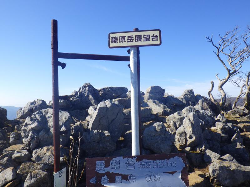- 神武神社(45分)大貝戸道登山道4合目(50分)8合目(45分)藤原山荘(20分)藤原岳山頂(30分)天狗岩(140分)神武神社