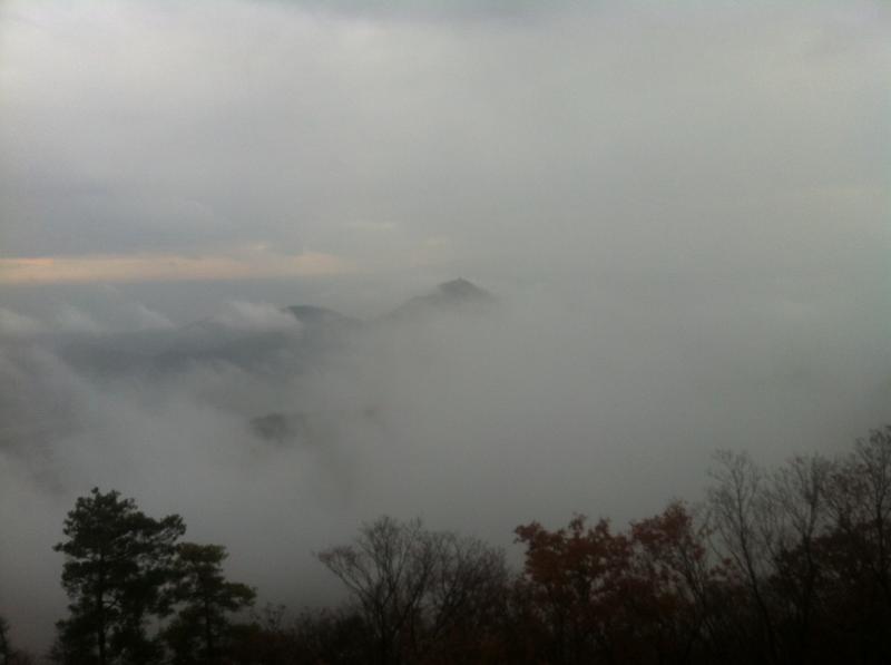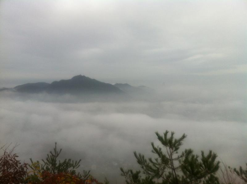 前半は小雨が降り続いていたおかげで、普段なかなかお目にかかることのできない雲海の中にそびえる金華山を見ることができました。