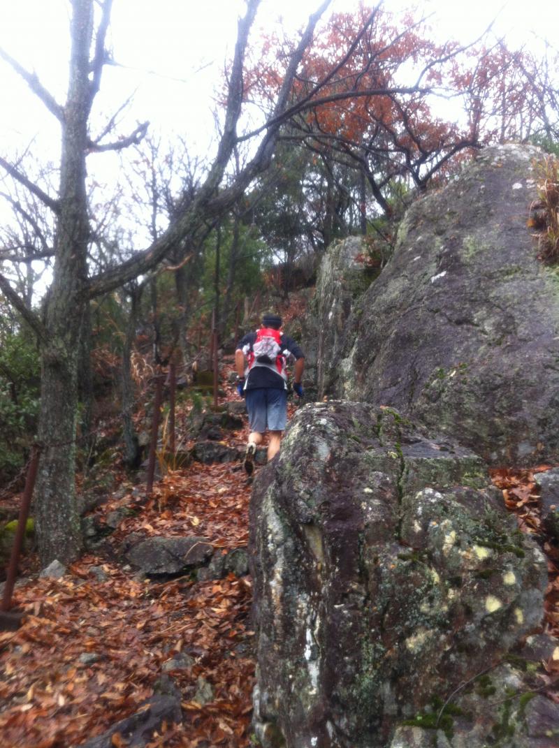 - 落ち葉と岩のゴロゴロしたコース。標高は低いのですが急なアップダウンが多いので足を滑らせないように注意が必要。