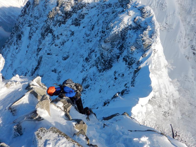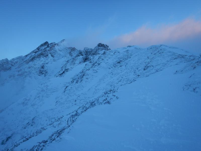 西穂高頂上までは痩せ尾根、岩場の登下降あり。