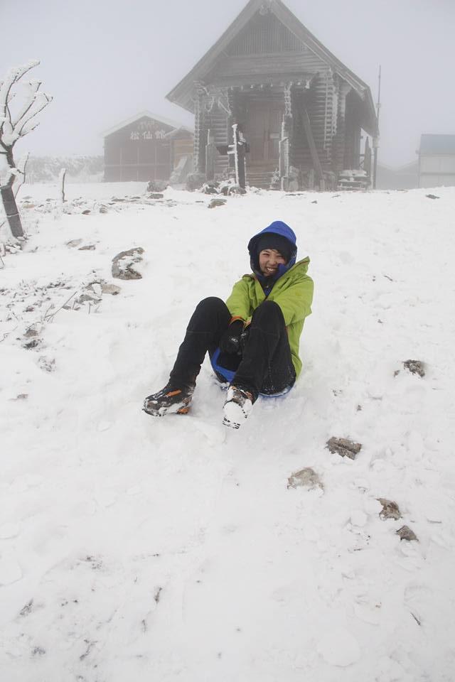 そして、今回絶対やってみようと担いできたそりでほんの少しだけ遊んでみました。