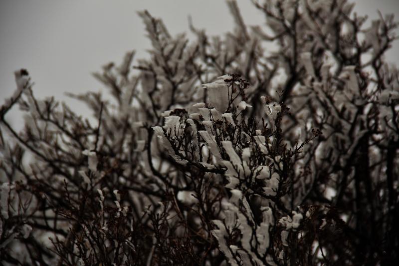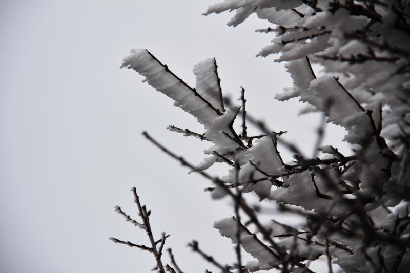 空気中の水蒸気が昇華して樹枝などの地物についた 樹霜
