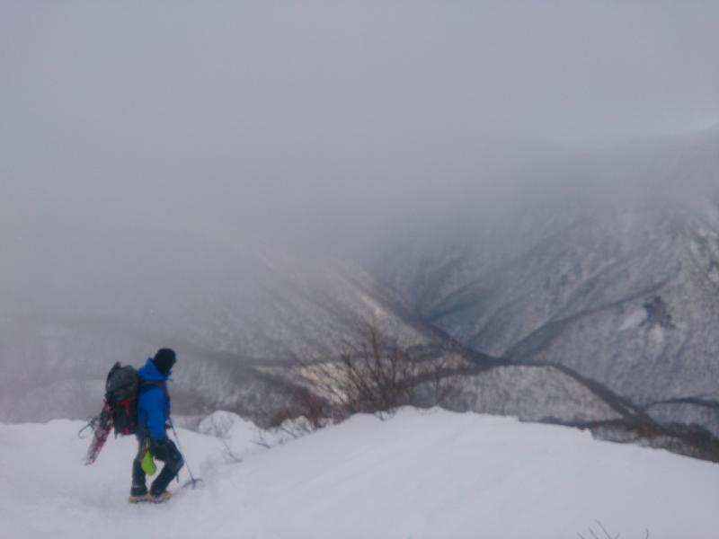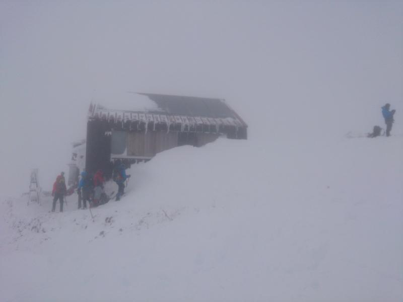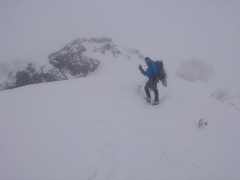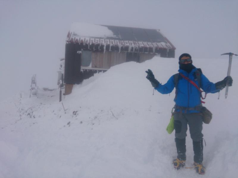 熊穴沢避難小屋から山頂までは雪庇と強風に注意してください。