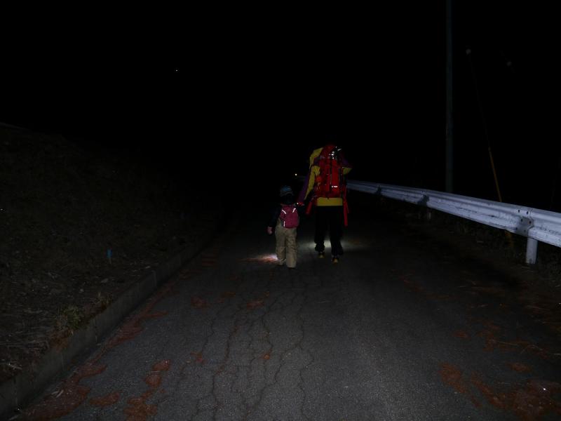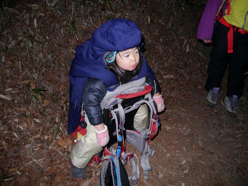 30分ほど歩いてだんだん東の空が明るくなってきたころ、娘のベビーキャリア乗りたいコールが・・・。