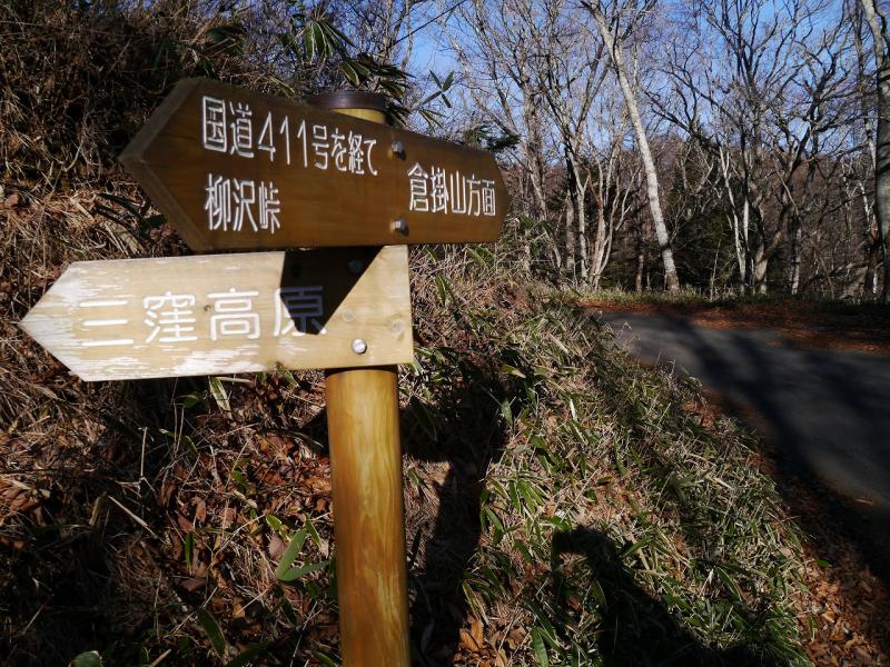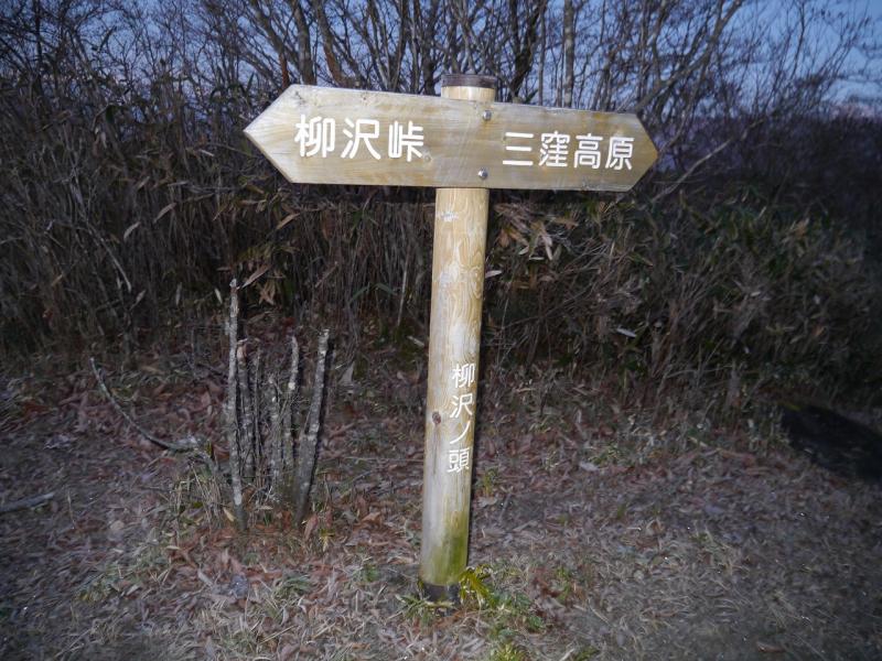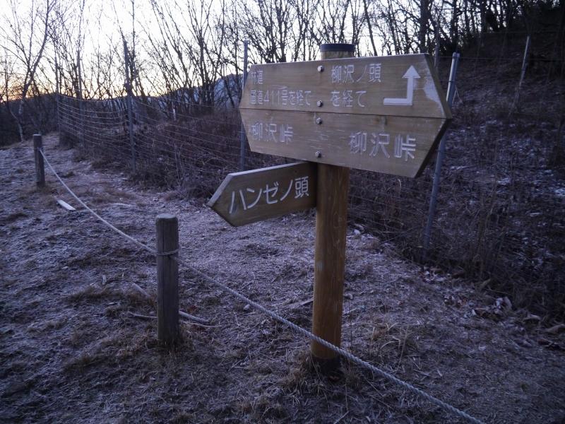 - 柳沢峠(50分)柳沢の頭(10分)十字路(10分)ハンゼノ頭(35分)林道(10分)411号線(10分)柳沢峠