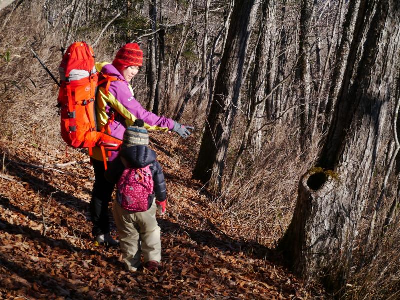 娘は霜柱を掘り起こしたり、トンネル状になった木をくぐったり、色々遊びながら、下りはすべて歩いてくれました。道は広いので小さなお子さんも歩きやすいです。