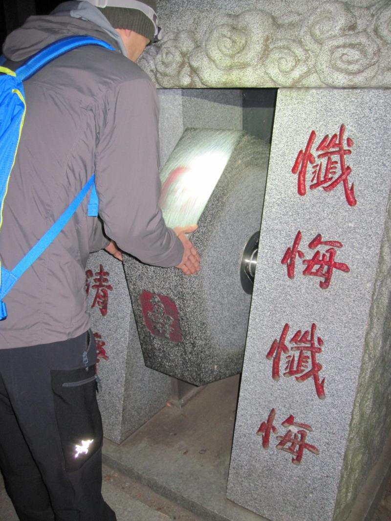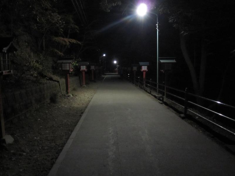 下りは観光がてらで1号路へ。暗い中天狗やたこ杉、社などを見るのは、私には結構怖かったです。さる園の入り口付近で青くビガッと光る二つの玉が並んで見えた時には、何か出た!!と焦りましたが、猫でした。また薬王院や茶屋にはどうやら人が住んでいらっしゃるようなので、夜間は静かに歩行して下さい。関係者の車の往来も結構あります。