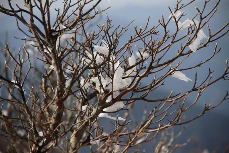 ちょうど青空が映えとても美しい。霧氷も残っていました。