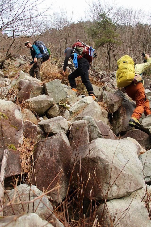 通年ならば、一番の短いルートの防村からでないと入れないくらいの積雪がある山ですが、今年は少ないので大山口から登りました