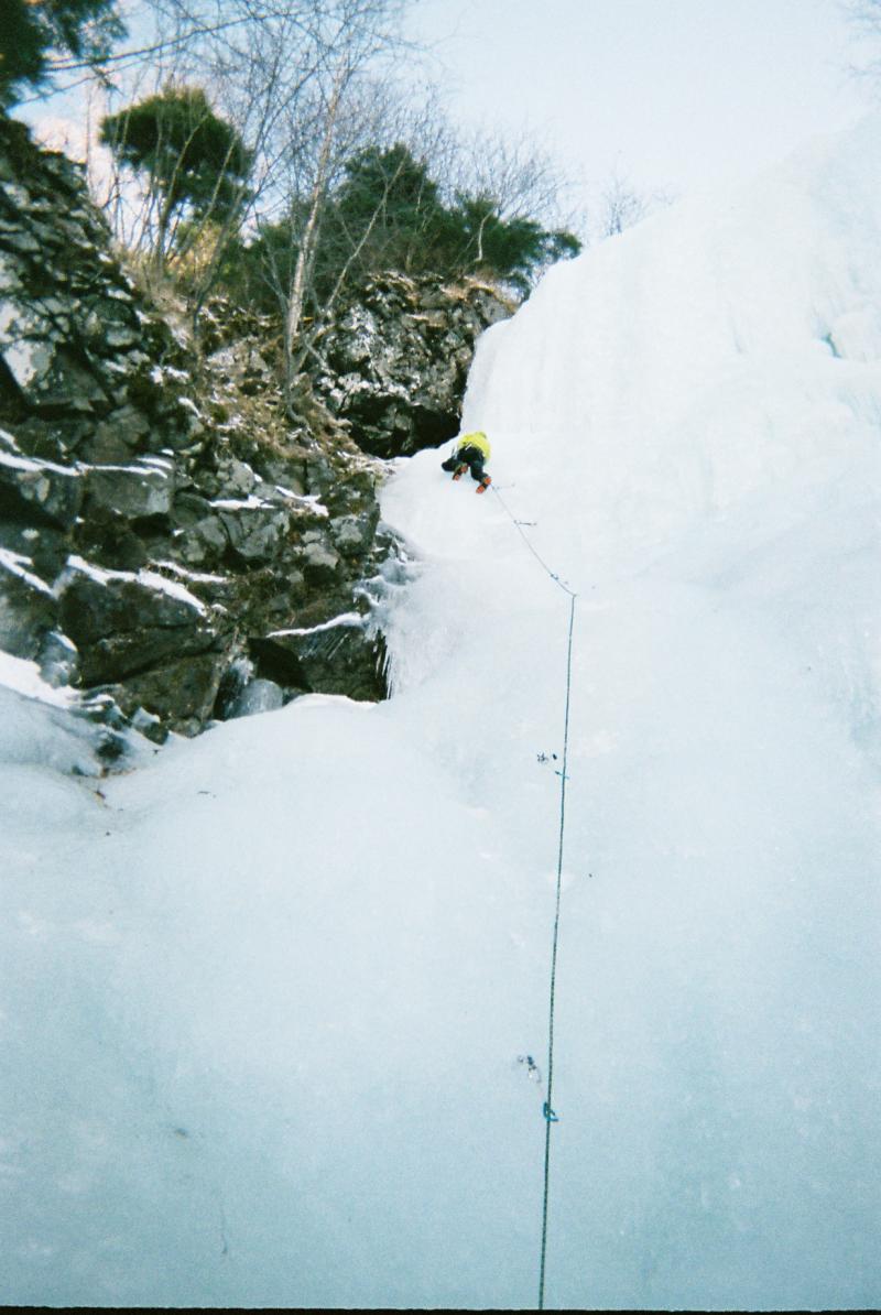 我々は途中でピッチを区切り裏同心ルンゼ登攀の予行練習を行いました。