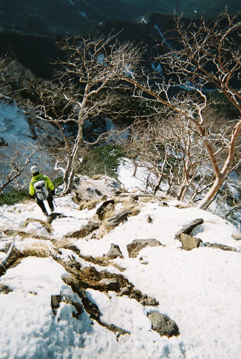 大同心稜の下降路は斜度がきつく滑りやすい個所があるので要注意です。