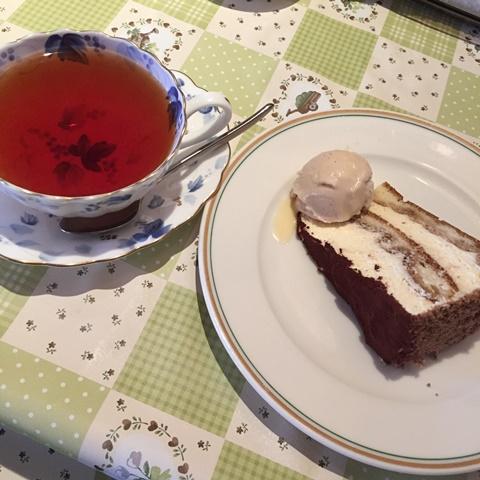 下山してから、鼓ヶ滝を見て、カフェでケーキセットを頂いてから、