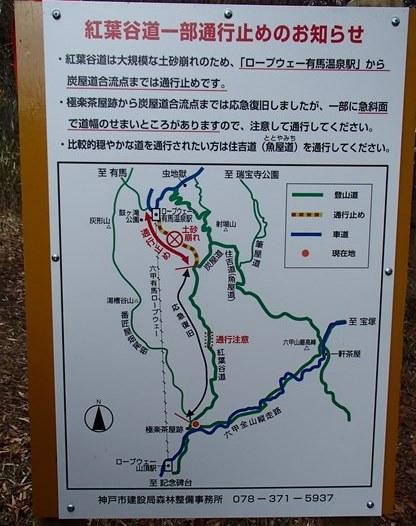 ロープウェイ有馬駅~炭屋道合流点まで通行止め
