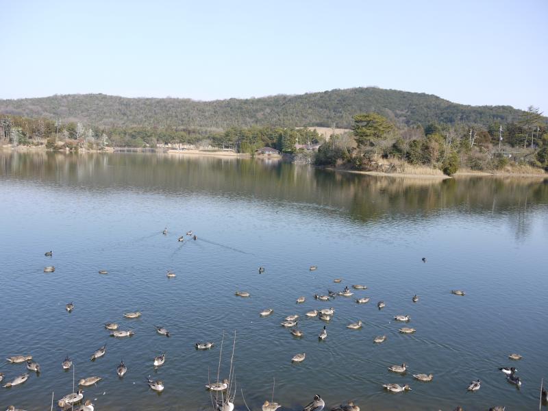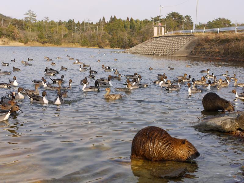 ・スタート/ゴールの鴨池には多くのカモ類や雁がいます、コハクチョウは暖かい冬のせいか数羽見かけただけでした。が水辺にヌートリアが2匹リラックスした様子でうろうろしていたのにはびっくりしました。