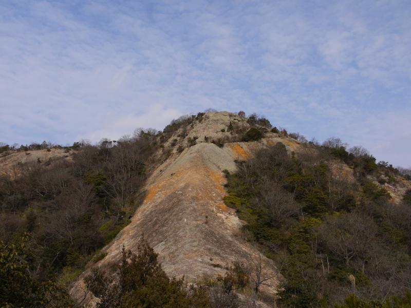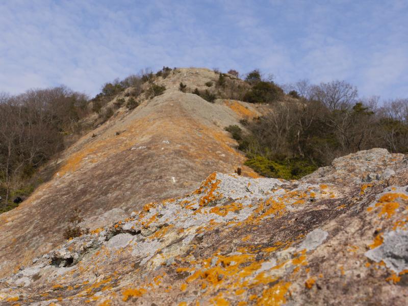 ・紅山の岩登りは遠くから見るよりも登ってみると急に感じます。所々紅色もしくは橙色になっているのは地衣類だそうです。