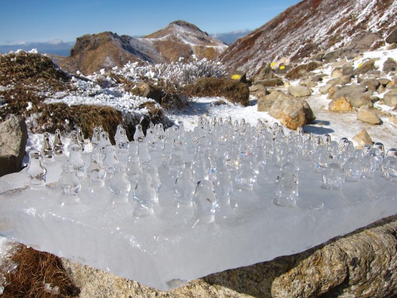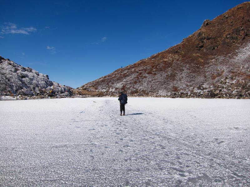 期待していた御池は、氷結した池の縁が融けかけていましたが、