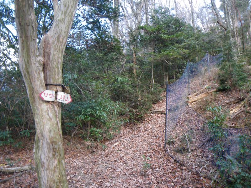 ⑥ササ峠へ登る分岐に始めて、標識があります