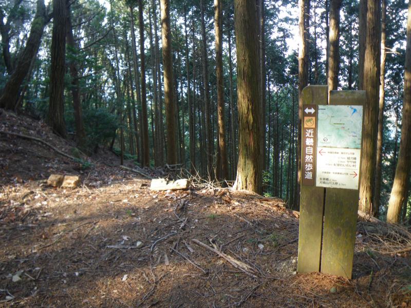⑩城が峰からすぐに生草林道起点(492m地点)に出ますが、ここに近畿自然歩道の標識があります