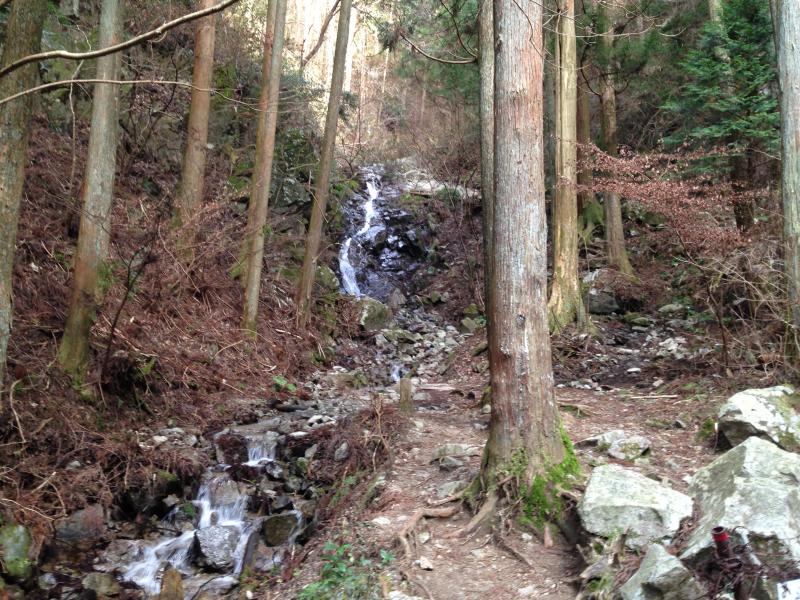 - 百ヶ辻(15分)細尾谷分岐(60分)遊歩道合流(20分)葛城神社(15分)山頂広場(50分)カトラ谷出合(30分)金剛登山口