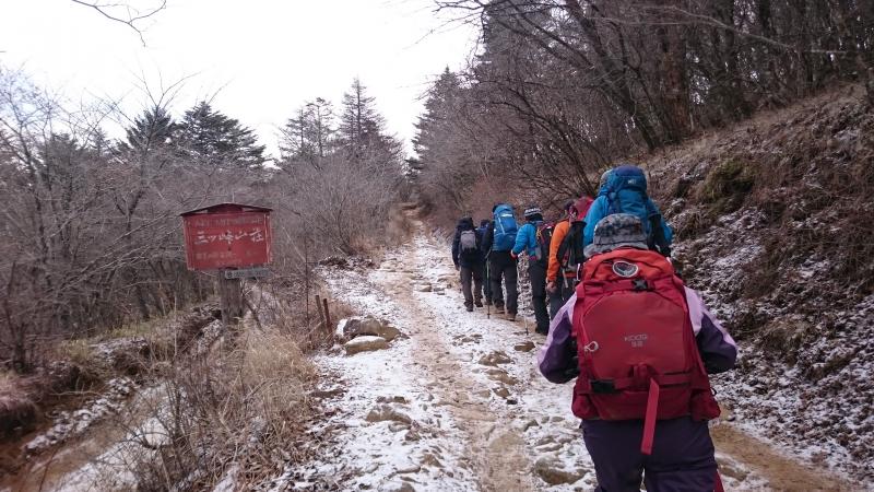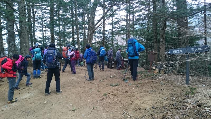 - 三ッ峠登山口(50)第一ベンチ(40)木無山(30)開運岳(15)御巣鷹山(45)第一ベンチ(30)三ッ峠登山口