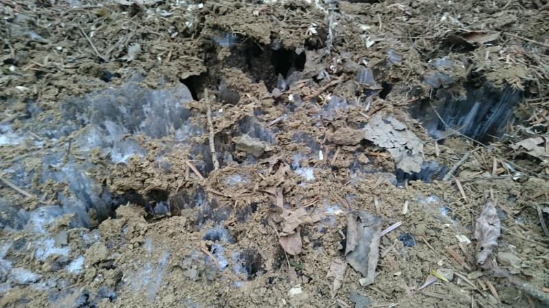 登山道脇には大きく成長した霜柱がびっしりとできていました。