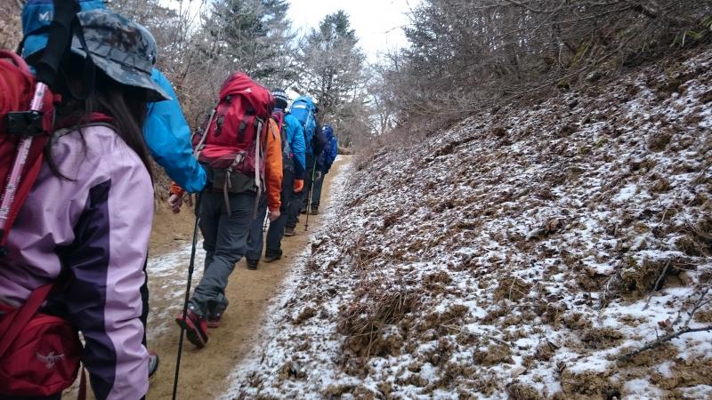 アイゼン歩行はできませんでしたが、砂や砂利などでざれている坂の上り方や下り方などのお話もあり充実した山行になったのではないでしょうか。