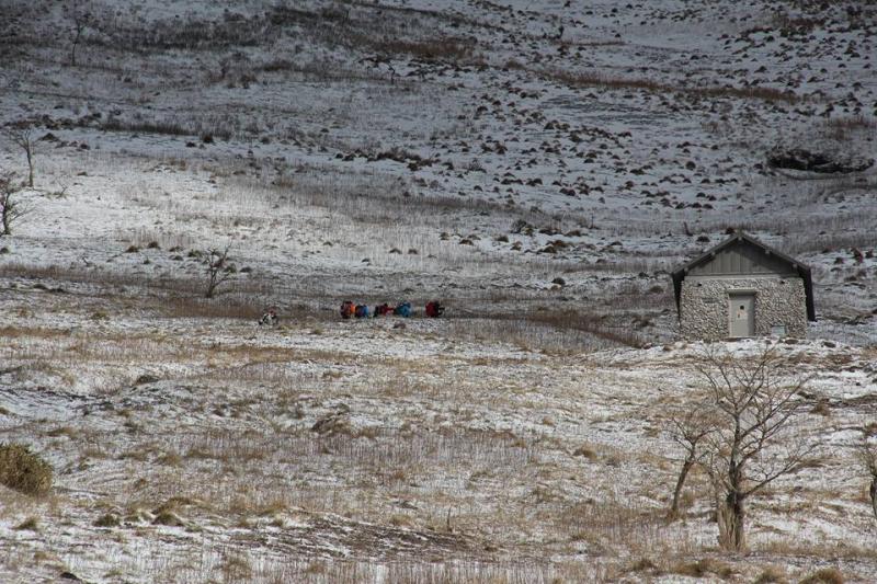六合避難小屋で、山専ボトル鍋 岡山産の大根と白菜、しゃぶしゃぶ肉鍋であったまりました。