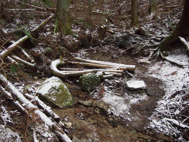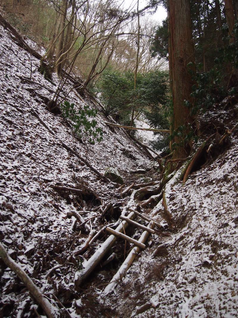 待ちに待った雪情報。というわけで、先日のリベンジも含めてタカハタ道で山頂を目指しました。あらためてツツジオ谷道との分岐を確認。