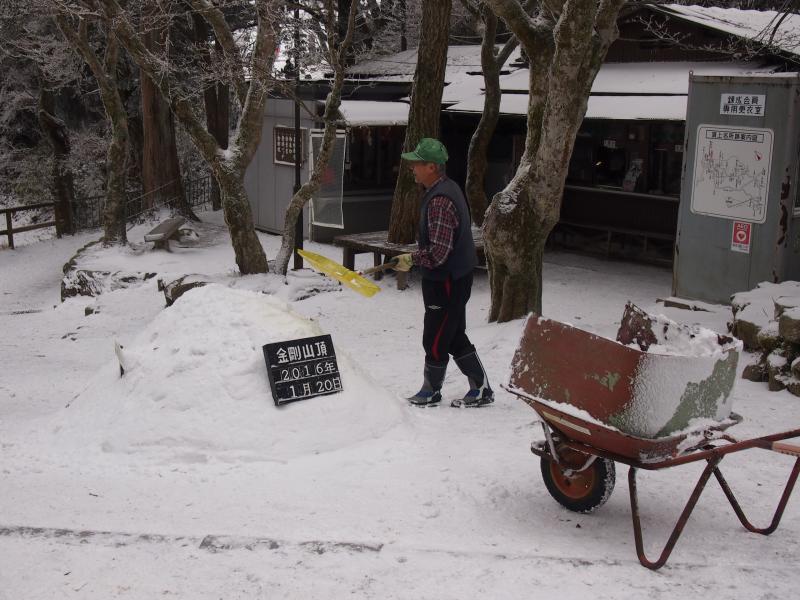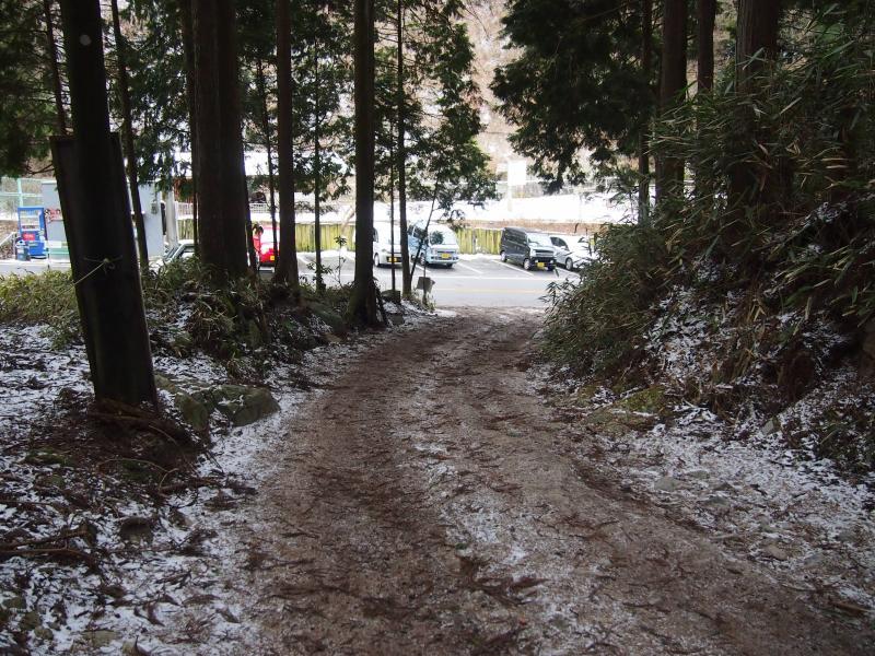 - この日、金剛登山口バス停付近はわずかに雪がある程度。入口付近では凍結も見られませんでした。