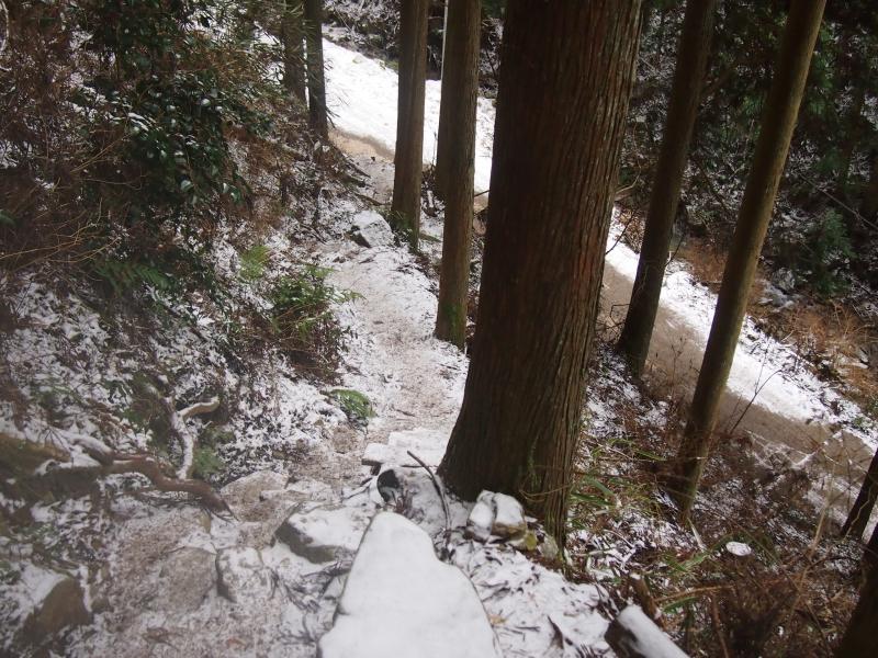 帰りは文殊尾で下山。登山口まで雪ないし圧雪凍結がありアイゼンは装着したままの下山となりました。